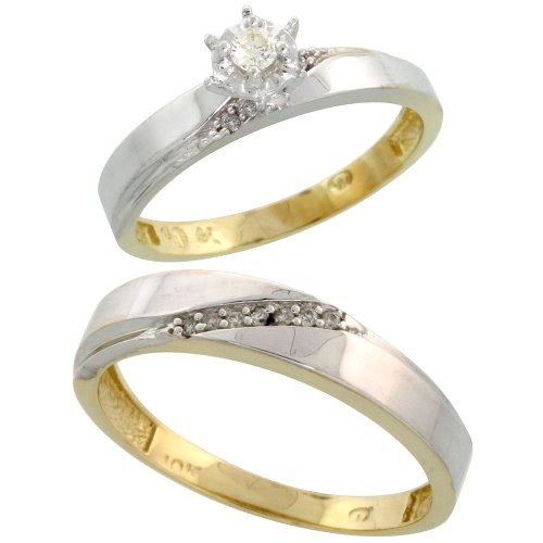 >.< 10k Gold 2-Piece Diamond Ring Set ( Engagement Ring & Man's Wedding Band ), w/ 0.13 Carat Brilliant Cut Diamonds, ( 5.5mm; 6mm ) wide, Size 5 @Review Best