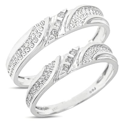 >.< 1/10 Carat T.W. Round Cut Diamond Ladies' and Men's Wedding Rings 10K White GoldTwo Rings: Ladies Wedding Band and Men's Wedding Band - Free Gift Box - @Big Save