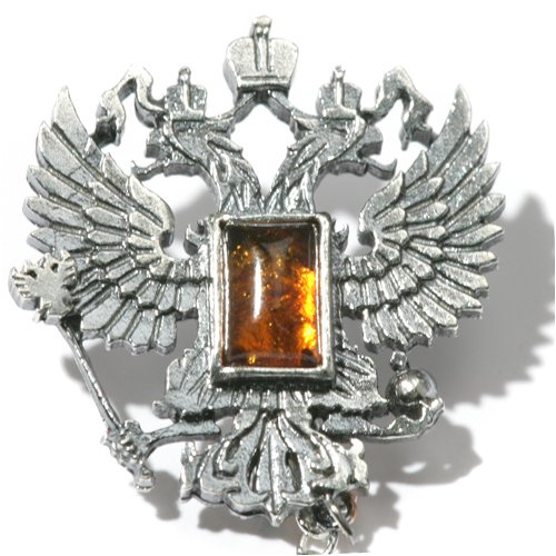 Best Price ... Cheap Price Now! Certified Genuine Honey Amber and Sterling Silver Coats of Arms Pin !!!