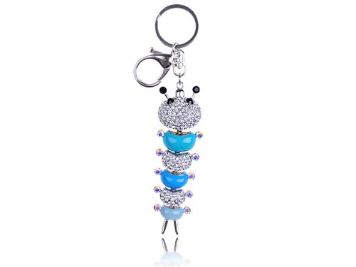 --> Details : Enamel Turquoise Centipede Caterpillar Swarovski Crystal Rhinestone Keychain