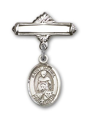 >.< Sterling Silver Baby Badge with St. Daniel Charm and Polished Badge Pin St. Daniel is the Patron Saint of Prisoners @Low Price