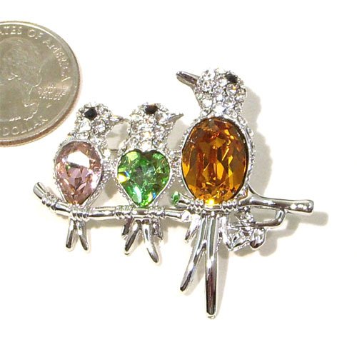Buy Now! Lab Created Pink Sapphire, Topaz and Peridot & Austrian Rhinestone Birds Silver-Plated Brooch Pin